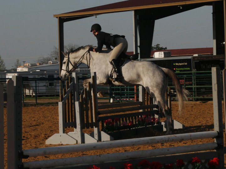 He was also wonderful over fences. He nailed all of his changes (thankfully he's auto because I'm change stupid) but the distances were set at an average 5 strides and for the Booms they turned out to be 4 and 3/4, and then finally he dished out 4s in the last two lines. He leaves strides out easily and without rushing so there is a chance, if everyone else sucked, he might have pinned. lol. I did not see results o/f so we'll just have to wait until they are posted online. Collecting him in the corners would have only made the distances worse because collection only adds power to the grey boy.